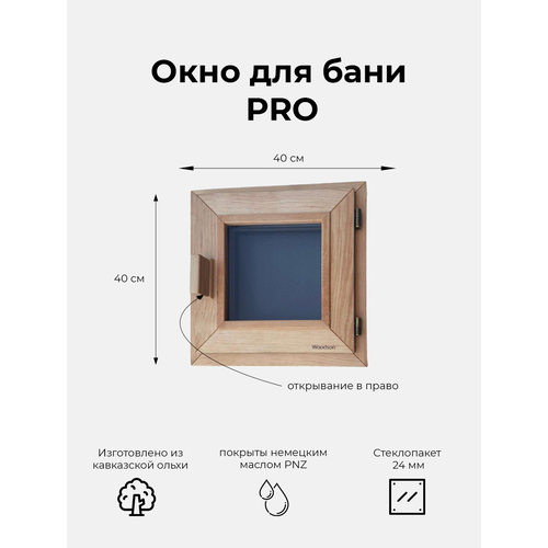 Окна Woodson 40*50 серии PRO для бани и комнат отдыха покрыты качественным немецким маслом PNZ в два слоя. Цвет стекла Grey (стекло...
