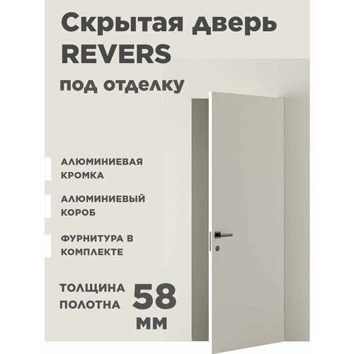 Скрытая дверь INVISIBLE REVERS кромка алюминий серебро (по 3м сторонам), левое открывание от себя, на себя, комплект 2000х800 мм.