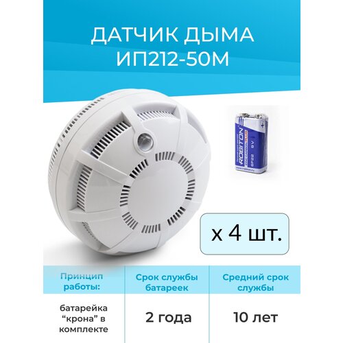 Комплект 4 датчиков дыма автономных - Извещатель пожарный дымовой ИП 212-50М (Элемент питания в комплекте)