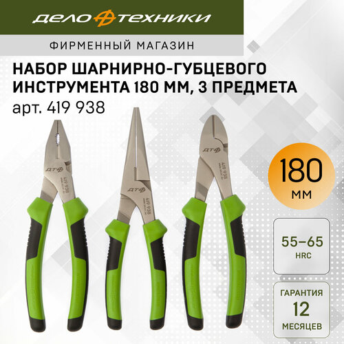 Набор шарнирно-губцевого инструмента 180 мм, 3 предмета, Дело Техники, 419938