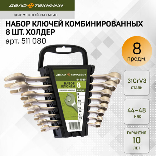Набор комбинированных ключей в холдере Дело Техники 511080, 8 предм., серебристый , 8 уп.