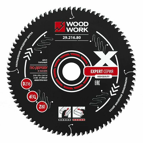 Диск пильный Эксперт 216x2,4/1,6x30 Z80 A-5 Woodwork 29.216.80
