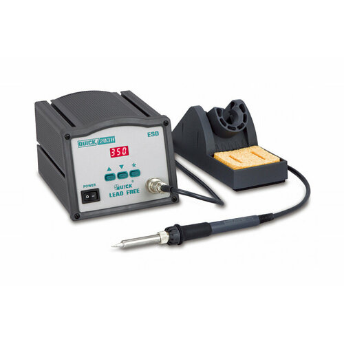 серый, темный, серыйПаяльник в сборе, используется в паяльных станциях Quick 202, Quick 202D, Quick 301. Напряжение питания 24 В. Мощность 60 Вт. Нагревательный элемент H601 (H1303). Жала серии Quick 303. Техническое описание