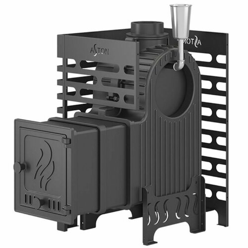Сетка-каменка из нержавейки обрамляет топку и вмещает в себя 60-70 кг. камней. Также у астон есть внутренняя закрытая каменка, подача воды в которую осуществляется через воронку, вынесенную наверх. Такая каменка позволяет получать легкий и мягкий пар.