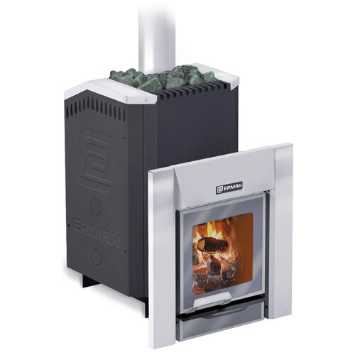 Дровяная банная печь Ермак 20 Премиум (Ч) 21.5 кВт 47 см 79 см 69 см серебристый/черный 22 м³ стекло 20 м²