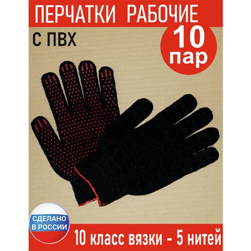 Перчатки рабочие ХБ с ПВХ, 10 класс, 5 нитей. 10 пар, черные