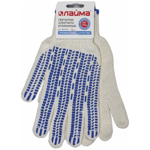Перчатки хлопчатобумажные комплект 5 пар 10 класс 40-42 г 116 текс ПВХ-точка LAIMA "люкс" белые, 4 шт