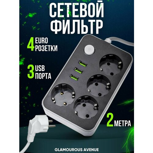 Сетевой фильтр hoco. NS1, 4 розетки, с/з, 16А / 4000 Вт 4 3 1.8 м 1.5 кв. мм 53 мм 44.5 мм белый