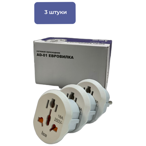 Евро-переходник универсальный на все виды розеток ISA 16А AD-01, 3 шт