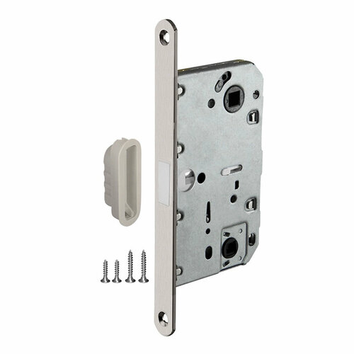 Замок под цилиндр врезной межкомнатный Vantage P85SC, с пластиковым язычком, межосевое расстояние 85 мм, матовый хром