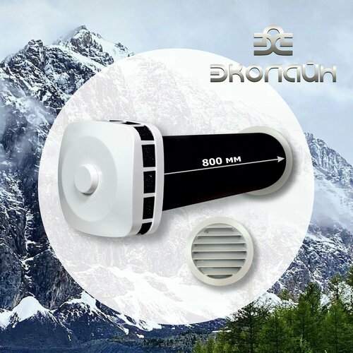 Приточный клапан КИВ-125-800 мм с белой металл решеткой (RAL 9003), круглый