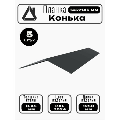 Планка конька плоского Длина 1250 мм, 145мм х145 мм RAL 7024 5 штук