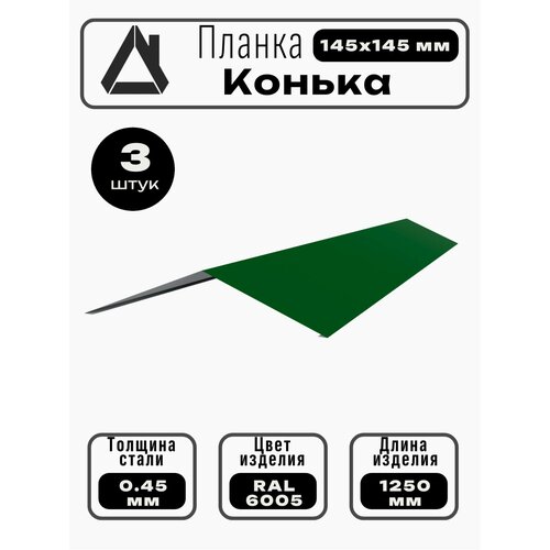 Планка конька плоского Длина 1250мм, 145мм х145 мм RAL 6005 3 штуки