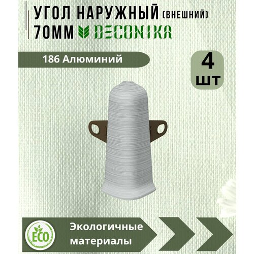 Угол наружный(внешний) для плинтуса Deconika 70х21мм 186 Алюминий - 4шт.