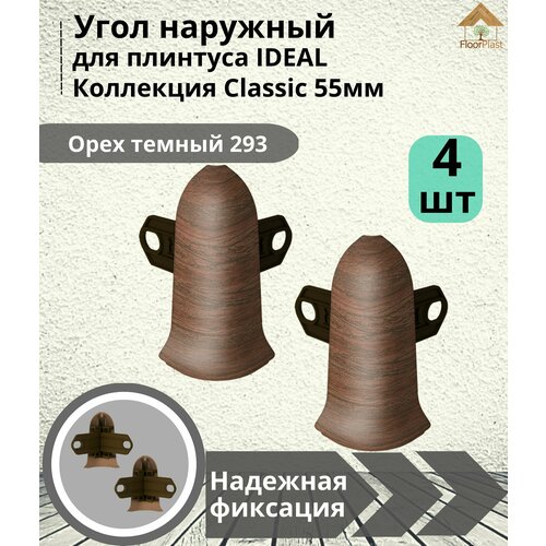 Угол наружный (внешний) для плинтуса Ideal (Идеал), коллекция Classic (Классик) 55мм, 293 Орех темный - 4шт.