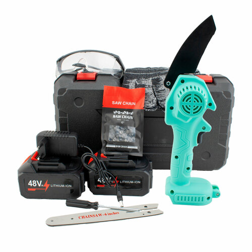 Цепная аккумуляторная пила (бирюзовая), 2шт АКБ и ЗУ в комплекте + доп комплектация