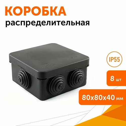 Коробка распределительная 40-0210-9005м безгалогенная (HF) черная 80х80х40, 8шт