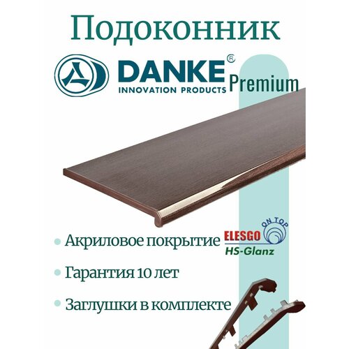 Подоконник Данке Премиум Венге, глянцевый, размер 50 x 130 см, с торцевой заглушкой, 2 капиноса - цельный с обеих сторон (столешница)