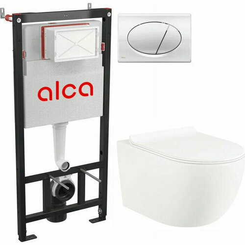 Комплект унитаза Selena Circulo с инсталляцией AlcaPlast, кнопка белая, сиденье микролифт (C001WG/M70)