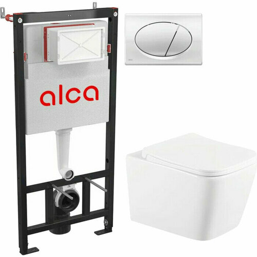 Комплект унитаза Selena Quadra с инсталляцией AlcaPlast, кнопка белая, сиденье микролифт (Q001WG/M70)