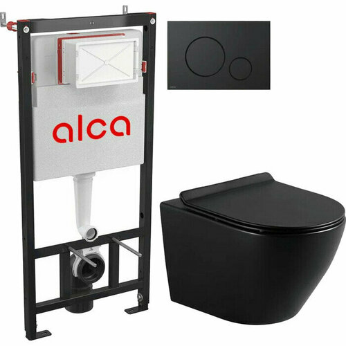 Комплект унитаза Selena Circulo с инсталляцией AlcaPlast, кнопка черная, сиденье микролифт, матовый (C001NM/M678)