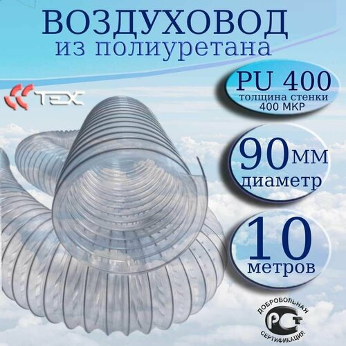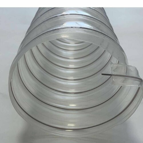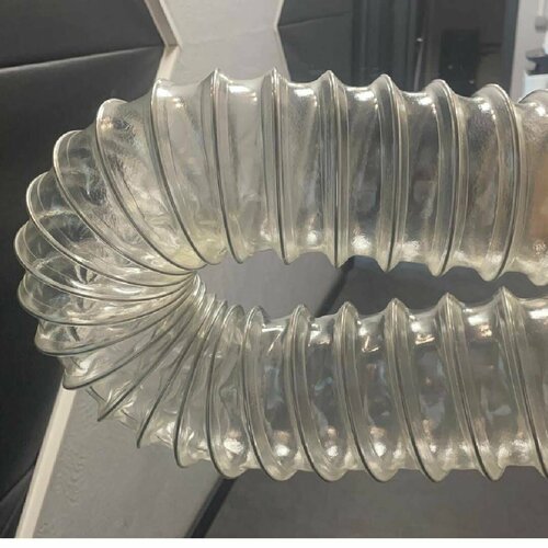 Полиуретановый гибкий воздуховод PU-400-90/5 армированный прозрачный шланг диаметр 90 мм, длина 5 метров. Гибкая гофра для аспирации и стружкоотсоса