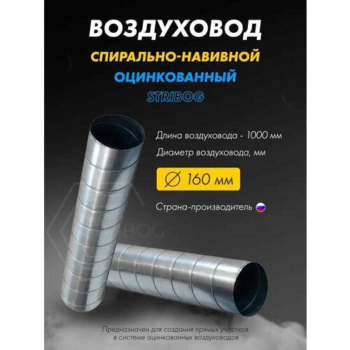 Воздуховод спирально-навивной D160/1000 мм для вентиляции