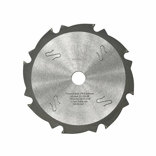 Пильный диск с PCD зубьями 165x2,4x1,6x20 Z-8 Woodwork 21.165.08