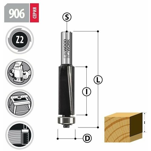 Фреза обгонная удлиненная WOODWORK 906.1951.12, D=19mm I=51mm S=12mm