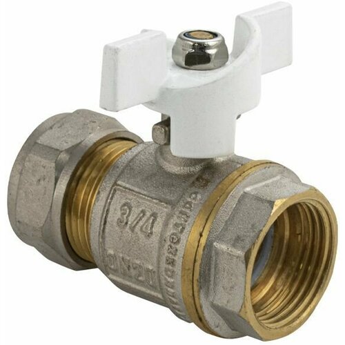 Кран для металлопластика 20х3/4, ц/ш, белая бабочка, латунный