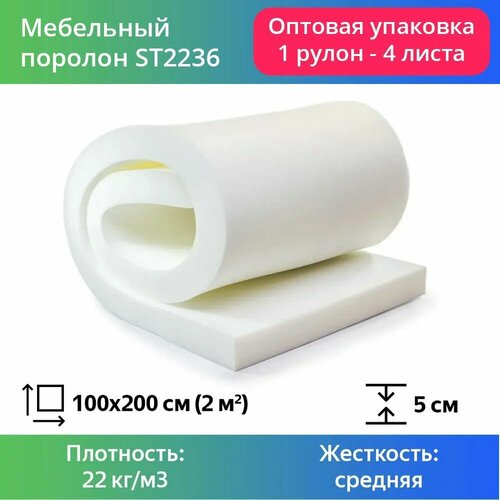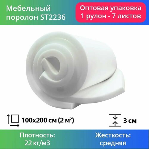 поролонПоролон мебельный ST 2236 плотностью 22 кг/м3 предназначен для изготовления упаковки, подлокотников, подголовников сиденья и спинки для дачной, детской мебели и матрасов с коротким сроком эксплуатации до 3 лет. В качестве обивки мебели (в том числе «внатяжку
