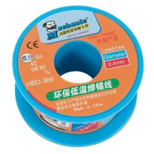 Припой проволочный бессвинцовый Mechanic HBD-366, диаметр 0.4 мм, 40 гр