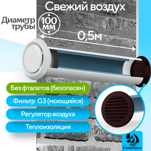 Приточный клапан вентиляционный, КП-1005-01-WB, диаметр 100мм, длина 0,5м