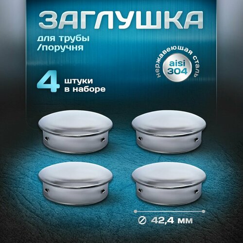 Заглушка для трубы, поручня диаметром 42,4 мм и толщиной стенки 1,5 мм, нержавеющая сталь aisi 304, 4 шт.