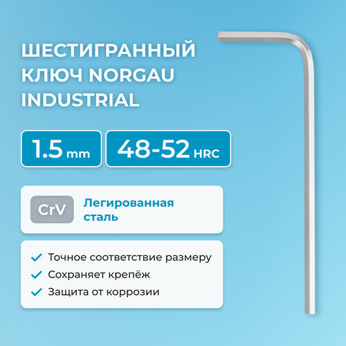 Шестигранный ключ NORGAU Industrial наружный шестигранник с хромированием, 48-52 HRC, 1.5 мм