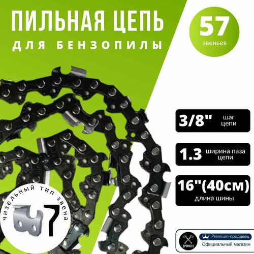 Цепь 57 звеньев пильная Варяг (16", 3/8, 1,3, 0,050) для бензопилы