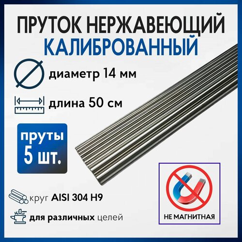 Пруток / круг из нержавейки 14мм. Нержавеющая сталь AISI304, пруток - 0,5 метра (5 штук)