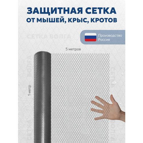 Сетка от грызунов (5 метров) для защиты каркасного дома / 5х5 мм / металлическая / оцинкованная / мелкая ячейка ЦПВС "сетка волга"
