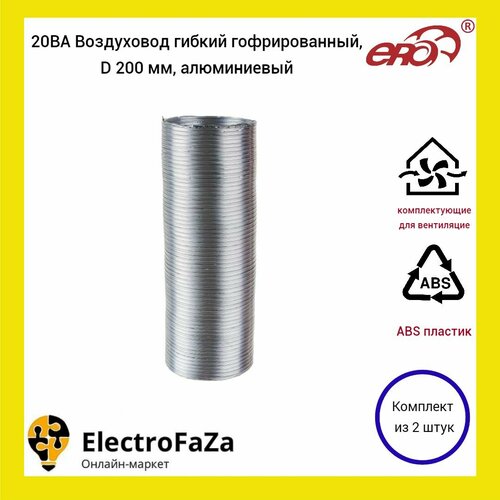 20ВА Воздуховод гибкий гофрированный, D 200 мм, алюминиевый (2шт)