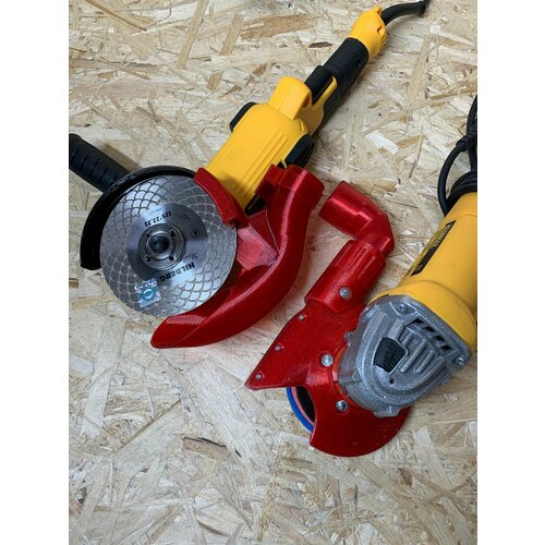 Пылеотвод для запила плитки под 45 градусов. Эффективно отводит пыль и осколки плитки. Жестко крепится к кожуху болгарки винтовым соединением. К корпусу болгарки крепится резиновым ремнём. Поставляется с угловым адаптером для более удобного отвода в сторону шланга пылесоса. В комплекте поставляются пластины для регулировки угла запила. Универсальный пылеотвод подходит для 99% УШМ. Доставка возможна через Авито