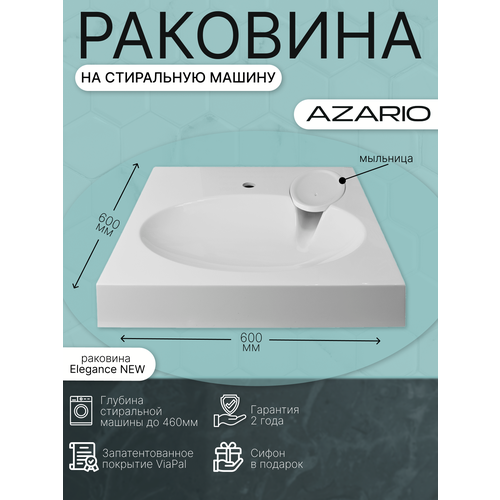 Раковина на стиральную машину Azario Elegance NEW 600х600х100 литьевой мрамор, белая, CS00086606