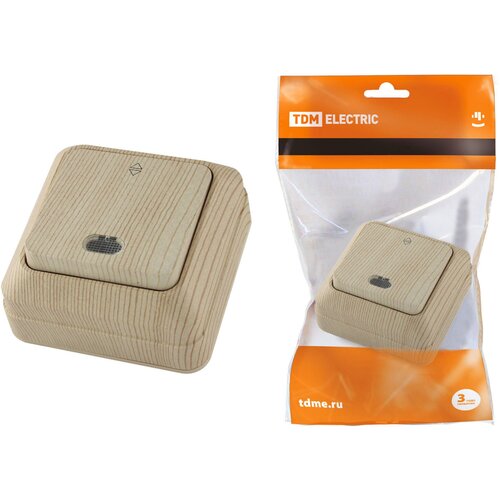 Переключатель на 2 направления 1-кл. открытой установки с подсветкой IP20 10А, сосна "Ладога" TDM