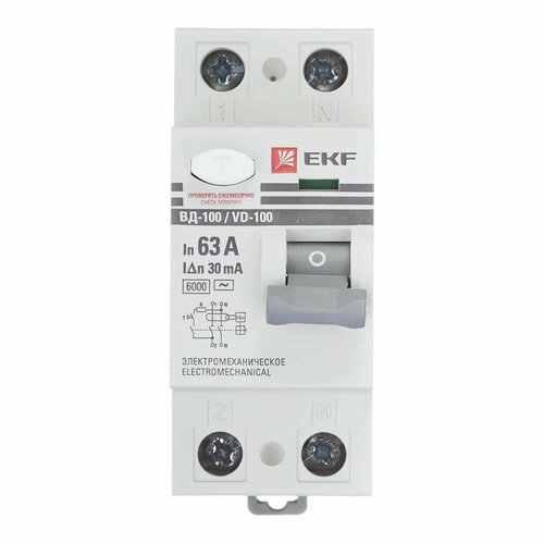 EKF Устройство защитного отключения ВД-100 2P 63А 30мА (тип АС, электромеханическое) 6кА PROxima elcb-2-6-63-30-em-pro