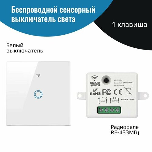 Беспроводной сенсорный выключатель света (1 клавиша + радиоуправляемое реле 220В 10А 433МГц)