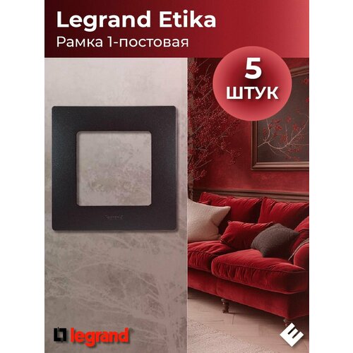 Рамка однопостовая антрацит, Legrand Etika (комплект 5шт)