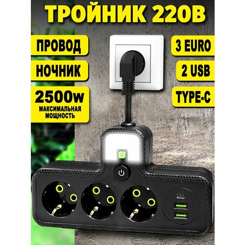 Тройник для розетки с USB и Type-C, разветвитель, сетевой фильтр, переходник-куб
