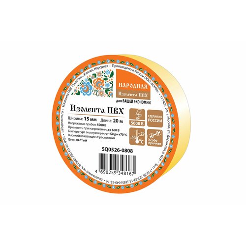 Изолента 15х20, Желтая, ПВХ Народная TDM SQ0526-0808