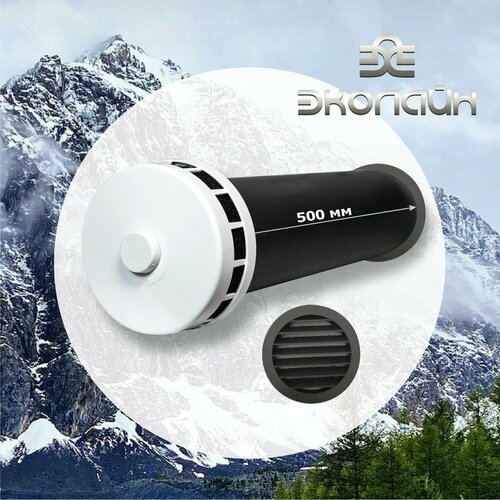 Приточный клапан КИВ-125-500 мм с черной металл решеткой (RAL 9005), круглый