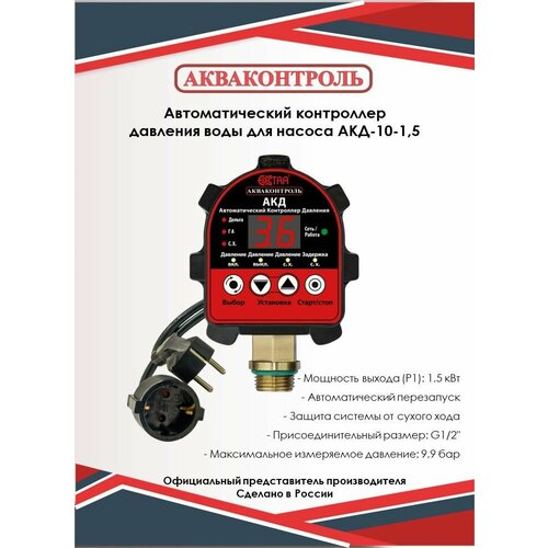 Реле давления воды для насоса Extra Акваконтроль АКД-10-1,5 / Автоматический контроллер давления воды / Подключение G1/2"