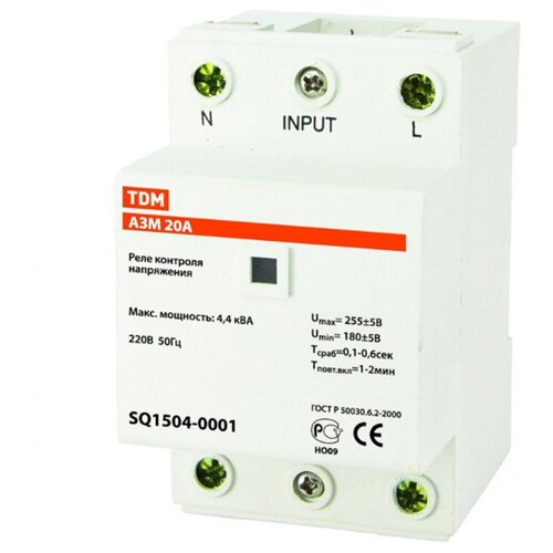 Реле контроля напряжения АЗМ 20А-220В TDM {SQ1504-0001} 1 шт